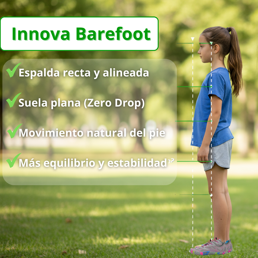 Innova Barefoot está diseñado para respetar la forma natural del pie y favorecer un movimiento saludable desde la infancia.
