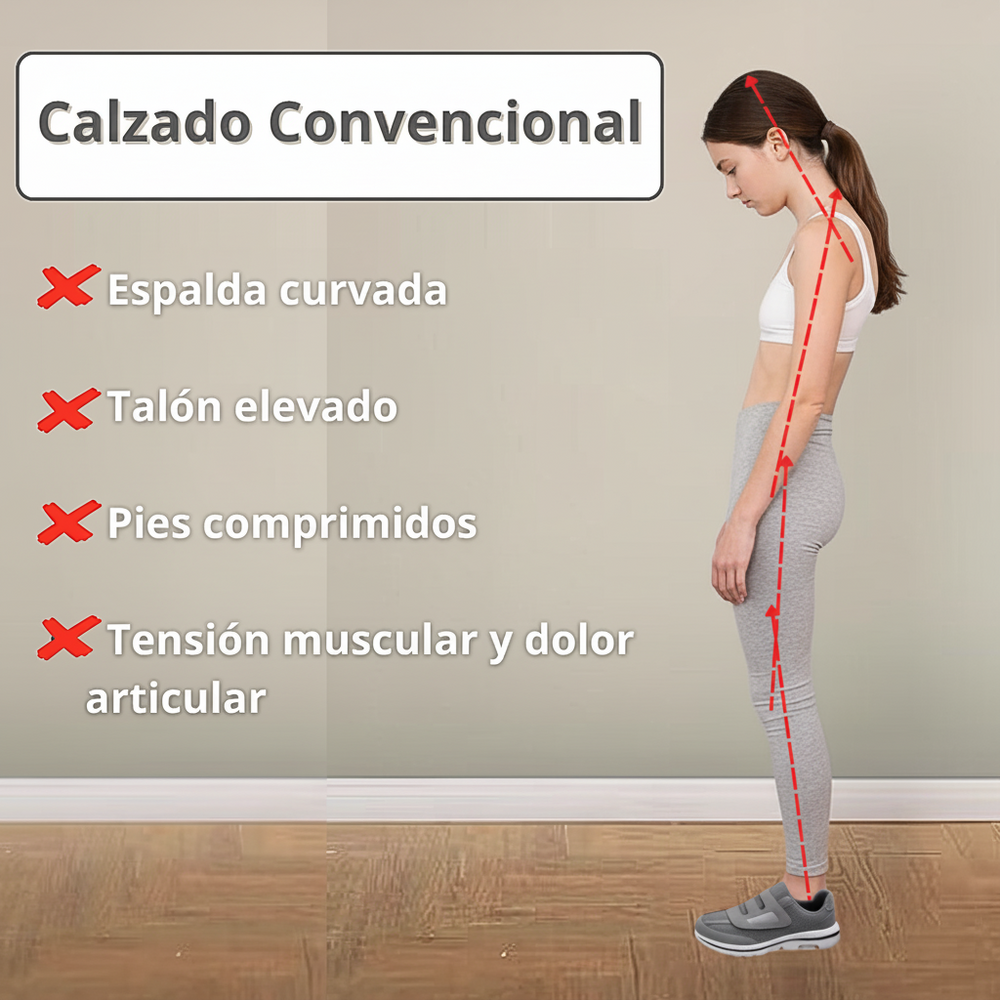 Su estructura flexible y ligera se adapta fácilmente, manteniendo la alineación natural y el movimiento saludable en cada paso.