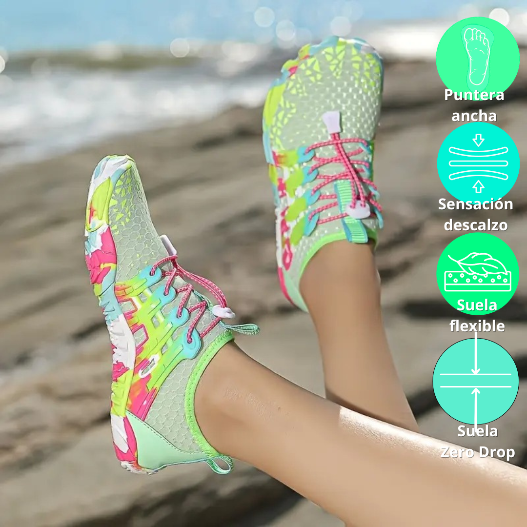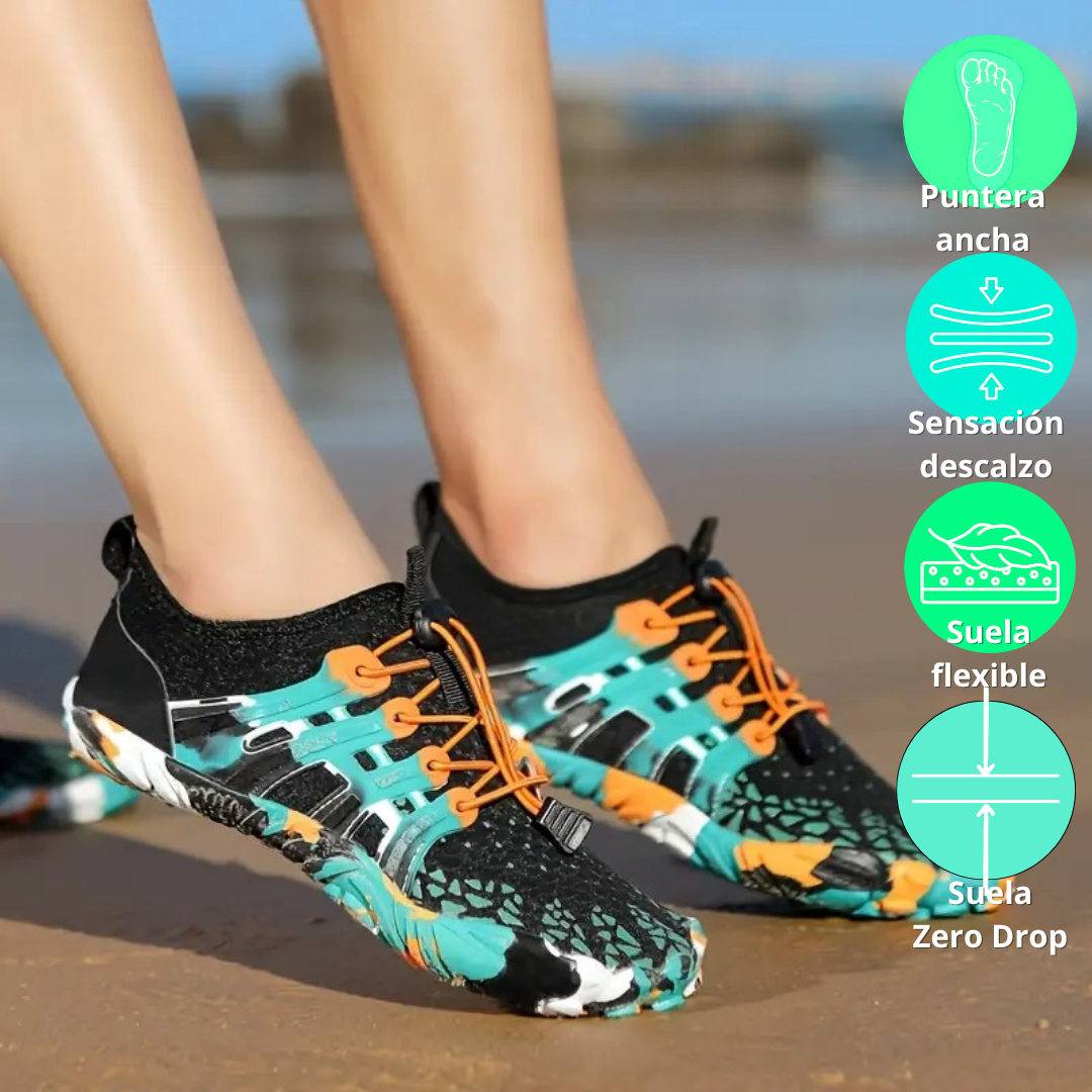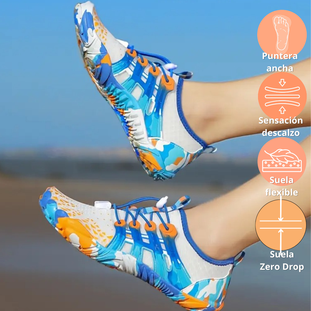 ✓ Puntera ancha: deja a los dedos moverse libres, fortaleciendo y dando flexibilidad al pie.
