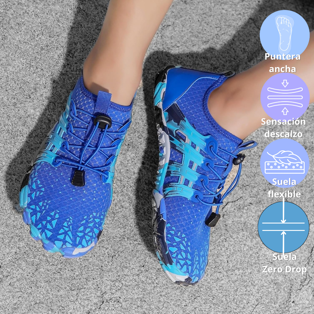 Su flexibilidad, puntera amplia y suela fina ayudan a prevenir dolores y mejorar la postura, siendo una elección recomendada por profesionales para el cuidado y desarrollo de los pies.