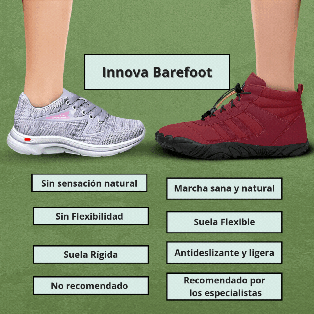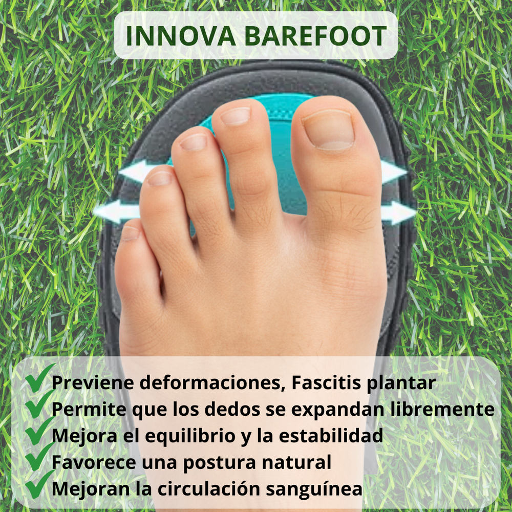 - Innova Barefoot respeta la anatomía del pie, mejora la alineación y previene dolores en rodillas, caderas, espalda y pies.