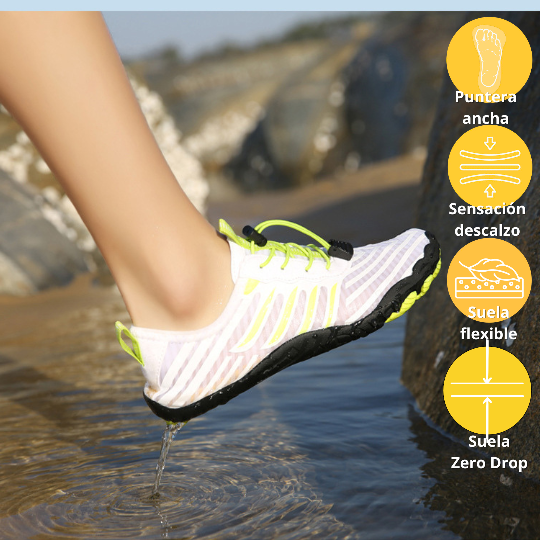 ✓ Puntera ancha: deja a los dedos moverse libres, fortaleciendo y dando flexibilidad al pie.