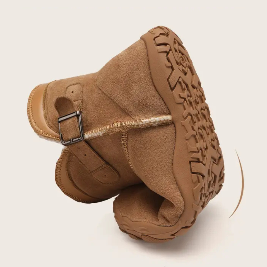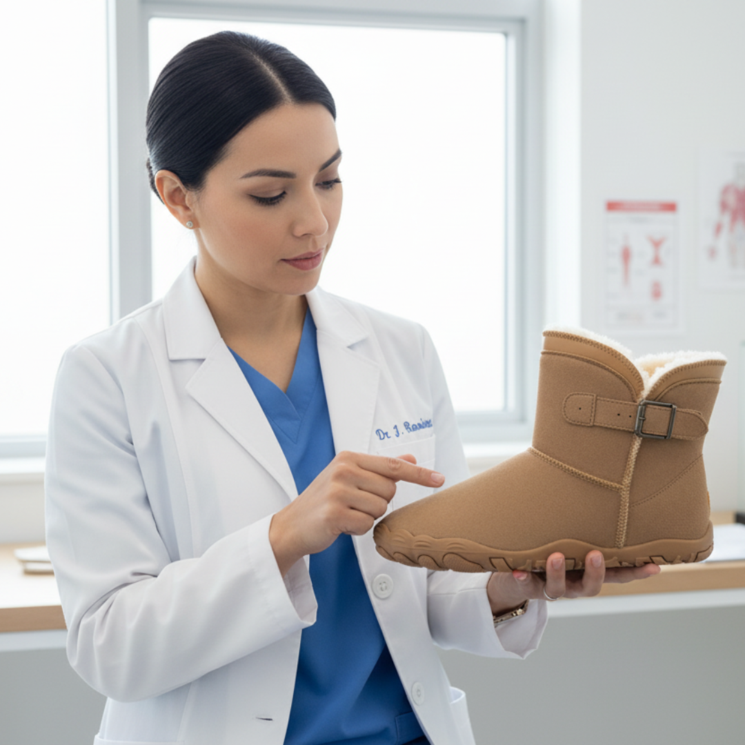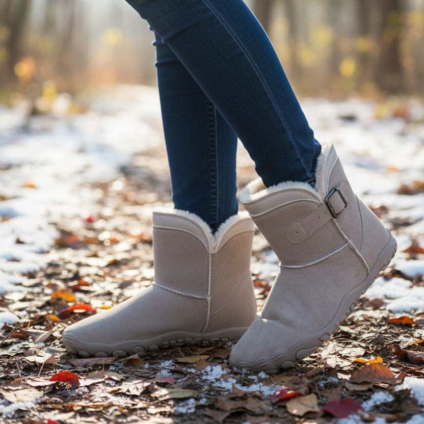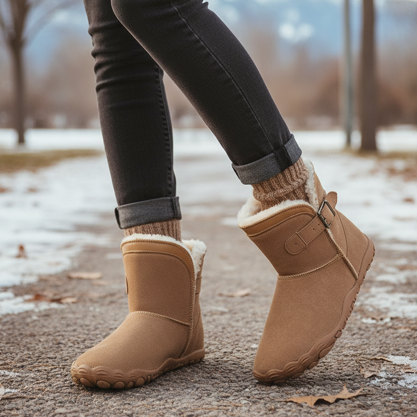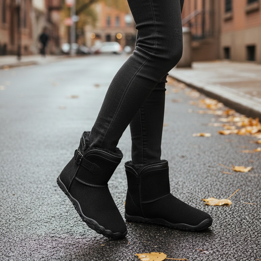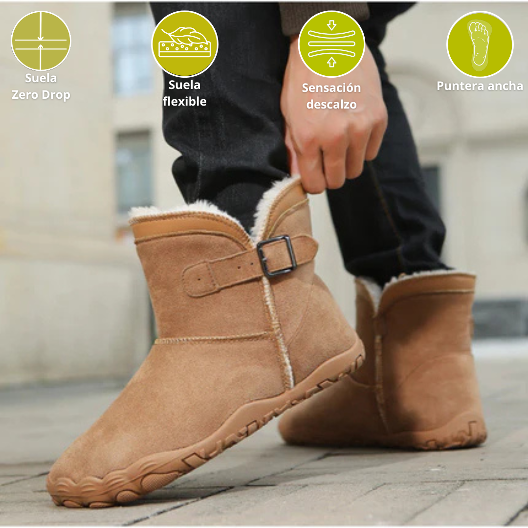 Su diseño barefoot con puntera amplia respeta la forma natural del pie, ofreciendo espacio, alineación y confort en cada paso, incluso en los días más fríos.