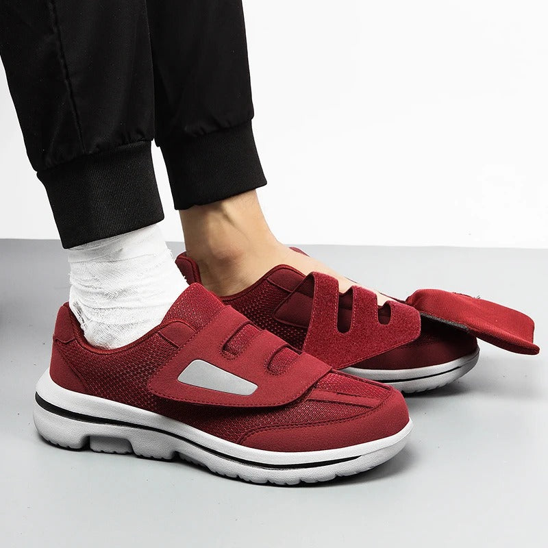- Abertura ampla com aba de velcro : a sua grande superfície de aderência permite abrir e fechar os sapatos num só movimento, ideal para idosos, pessoas com mobilidade reduzida ou que tenham dificuldade em calçar os sapatos.